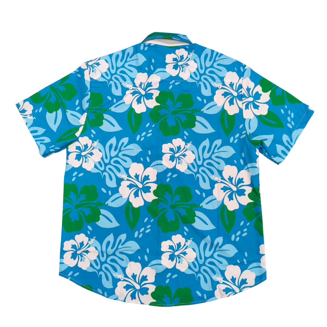 Adult - Hawaiian Shirt, Blue/Green/White Flowers